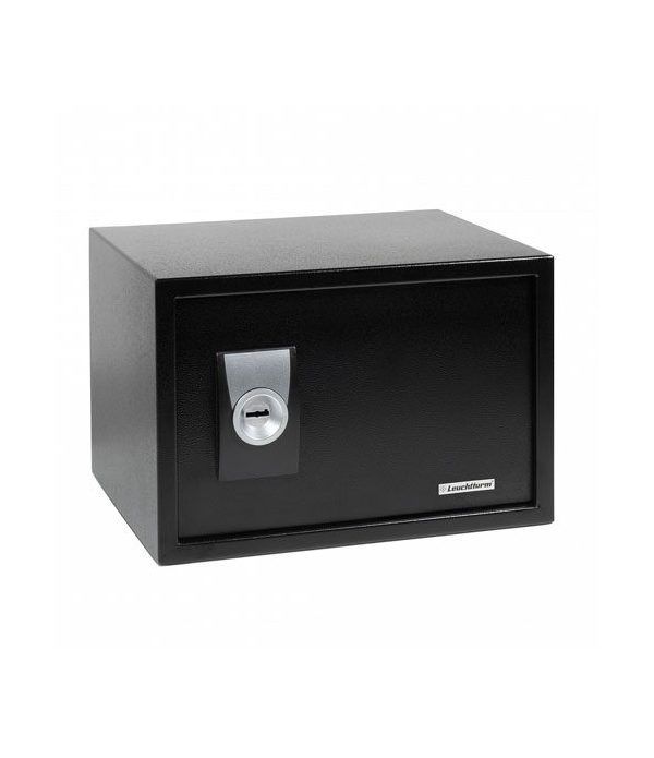 Protege tus objetos más valiosos con la caja fuerte KAVENT de LEUCHTTURM. Las paredes están hechas de un resistente acero de 2 mm de espesor y la puerta de un sólido acero de 4 mm. El cierre dispone de una llave de doble paletón y 2 sólidos pernos de acero. Gracias a su tamaño interior especialmente diseñado, se pueden guardar, archivadores de oficina A4, 3 álbumes GRANDE con cajetín protector, 7 álbumes NUMIS con cajetín protector (de pie), 13 bandejas de monedas MB, 8 estuches de madera VOLTERRA UNO, clasificadores, tapas de álbum con barra rotativa PERFECT, tapas a presión LUXUS, tapas de anillas EXCELLENT y mucho más. Dispone de una suave alfombrilla de fieltro en la base interior para proteger los objetos contra arañazos. En la parte trasera y en la base, tiene dos aberturas para tornillos para poder montarla bien en una pared cualquiera o en la pared de un armario o bien en el suelo o en un estante (incluye el material de montaje). Se suministran 2 llaves de doble paletón con claves individuales que sirven exclusivamente para la cerradura integrada. Peso: 13,5 kg. Medidas de la apertura de la puerta: 355 x 240 mm (L x Al). Medidas del interior: 425 x 290 x 340 mm (An x Al x Prof). Medidas exteriores: 430 x 295 x 360 mm (An x Al x Prof). Ref. 360945