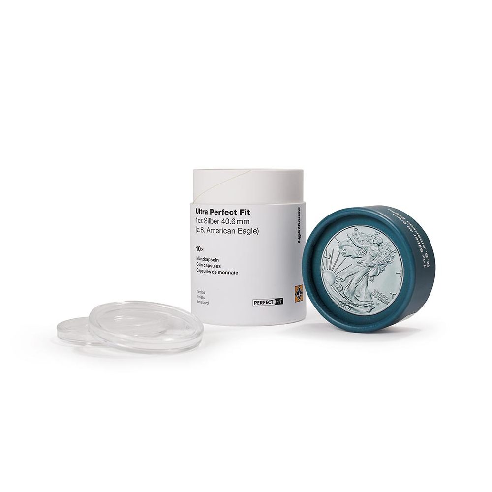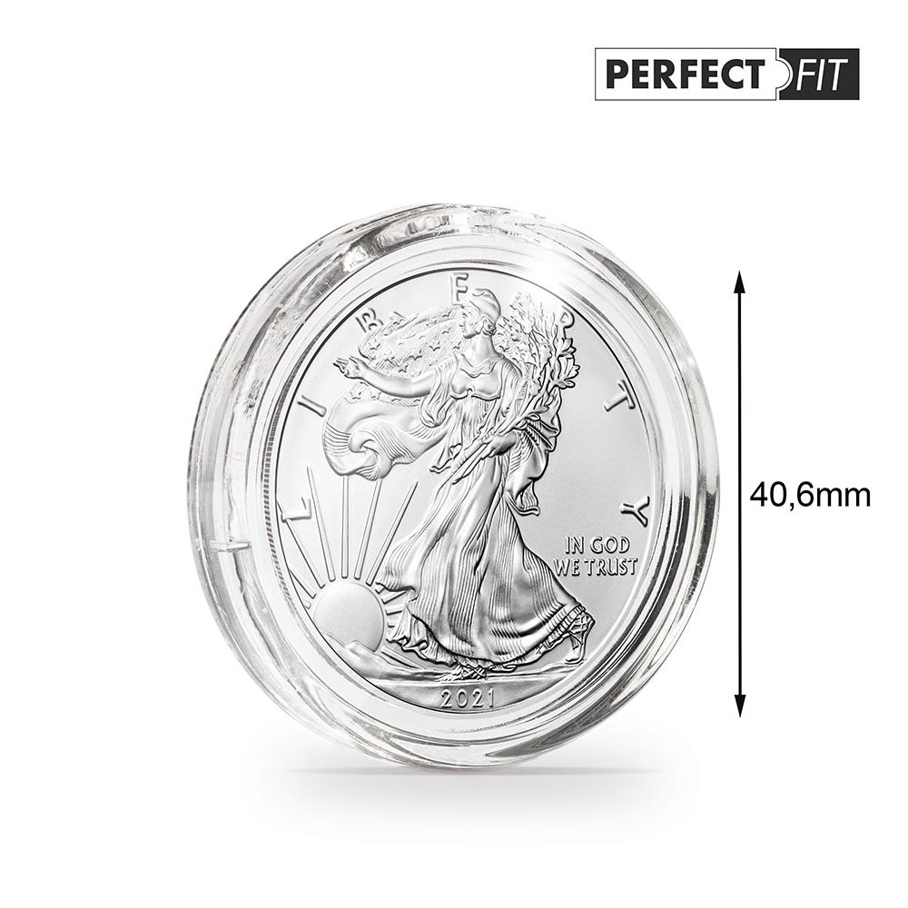 Estas cápsulas PERFECT FIT están hechas a medida para la Onza de plata de Estados Unidos, Liberty.