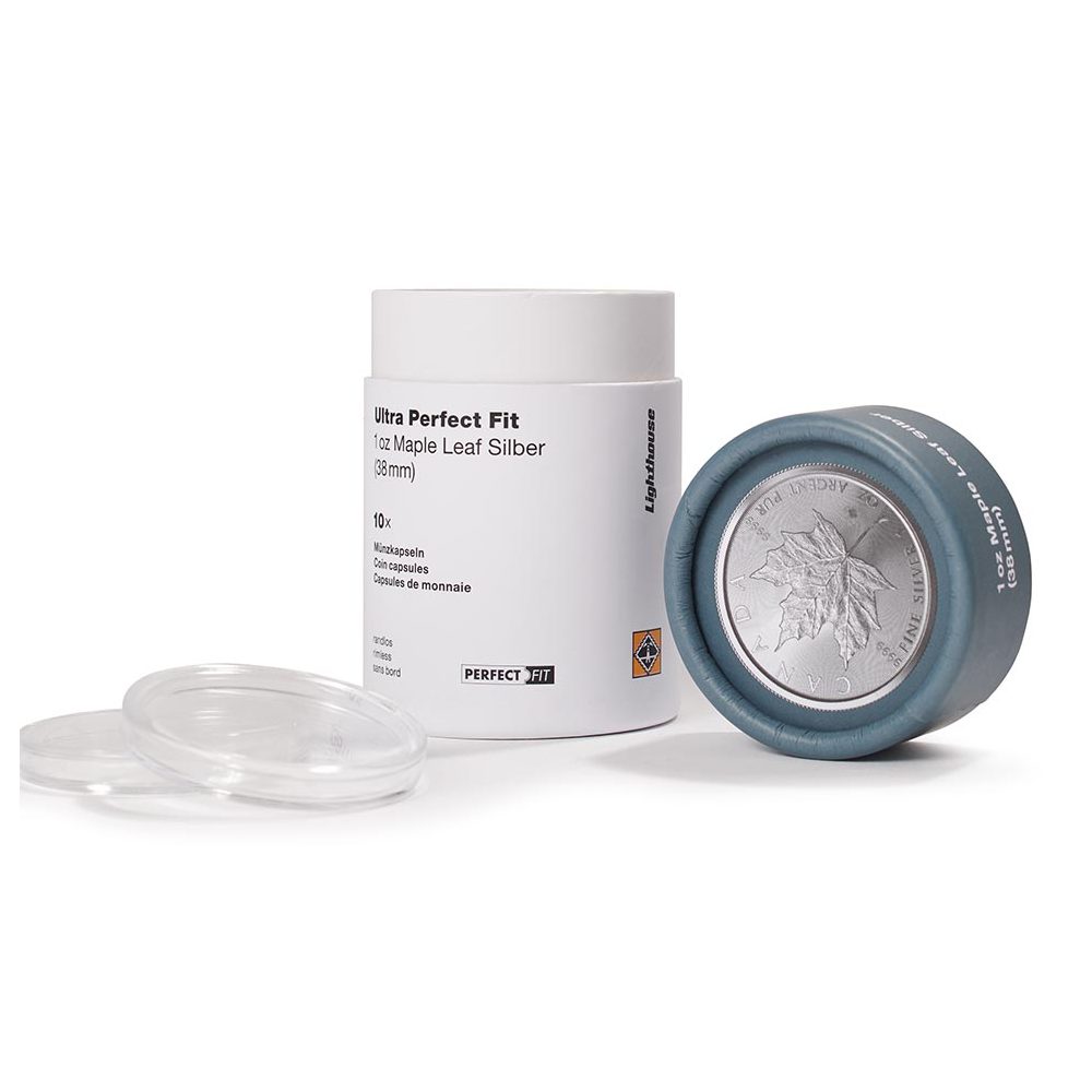 Estas cápsulas PERFECT FIT están hechas a medida para la Onza de plata de Canadá, Maple o Hoja de Arce.