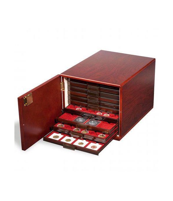 LEUCHTTURM Gabinete de monedas para 10 bandejas. Color Caoba.